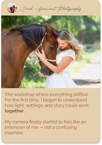 Everything changed. The camera became an extension of me. I could focus on the emotion, the light, the connection — not the buttons.